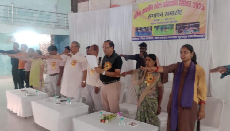 सूरजपुर/IRN.24…/ विगत दिवस मंगल भवन सूरजपुर में ग्रीष्मकालीन खेल प्रशिक्षण शिविर का समापन कार्यक्रम संपन्न हुआ। इस अवसर पर कलेक्टर श्री एस.जयवर्धन, डीप्टी कलेक्टर श्री सुनील अग्रवाल, श्री भीमसेन अग्रवाल, जिलाध्यक्ष फुटबॉल संघ व पूर्व अध्यक्ष पाठ्य पुस्तक निगम, श्री अनिल गोयल, जिलाध्यक्ष बैंडमिंटन संघ श्रीमती सुमित्रा सिंह सरपंच रूनियाडिह, श्रीमती वेनेदिक्ता तिर्की, उप संचालक, समाज एवं महिला कल्याण विभाग उपस्थिति में किया गया।