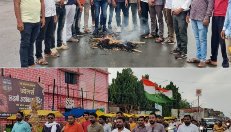 और इसी मामले में आज युवा कांग्रेस विधानसभा अध्यक्ष परमेश्वर राजवाड़े के नेतृत्व में सुरजपुर अग्रसेन चौक में पीएम मोदी का पुतला फूका और विरोध प्रदर्शन किया,इस कार्यक्रम में मुख्य रूप से युवा कांग्रेस ,सूरज अवस्थी, डीकेश यादव दीपक कर,मुस्तफा खान,मोनू प्रताप सिंह,नदीम,विजय ठाकुर, बंटी सिंह,वीर राजवाड़े,परवेस खान,साहिल,सोनू,अरविंद,इत्यादि कार्यकर्त्ता उपस्थित थे ।