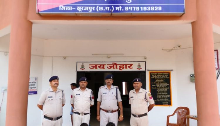 अतिरिक्त पुलिस अधीक्षक हरीश राठौर व एसडीओपी प्रतापपुर अमोलक सिंह के मार्गदर्शन में फरार आरोपियों की पतासाजी की जा रही थी इसी बीच सोमवार को मुखबीर की सूचना पर फरार आरोपी मुजाहिद अंसारी पिता अनवारूल अंसारी उम्र 32 वर्ष एवं मोहम्मद मकबूल अंसारी उर्फ गुड्डू पिता जमाल अंसारी उम्र 33 वर्ष निवासी ग्राम दबगड़ी, थाना प्रतापपुर को घेराबंदी कर पकड़ा गया और विधिवत् गिरफ्तार कर न्यायिक रिमाण्ड पर भेजा गया। इस कार्यवाही में चौकी प्रभारी खड़गवां संजय सिंह, प्रधान आरक्षक इंद्रजीत सिंह, संजय सिंह यादव, आरक्षक दीपक सिंह व प्रमोद गुप्ता सक्रिय रहे।