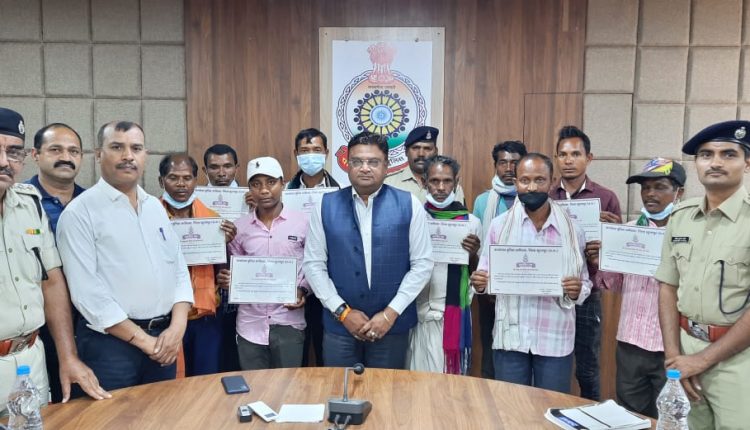 साहस भरे कार्य के लिए पुलिस अधीक्षक सूरजपुर ने ग्रामीणों को प्रशस्ति पत्र देकर किया सम्मानित।