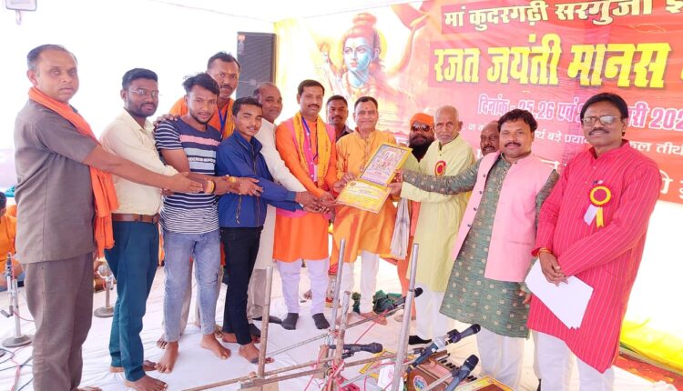 दतिमामोड़(IRN.24…)- मां कुदरगढी सरगुजा झण्डा मानस सेवा समिति के तत्वावधान में आयोजित तीन दिवसीय श्रीरामचरितमानस गायन वादन प्रतियोगिता का 25 वां आयोजन ग्राम दतिमा सूरजपुर में संपन्न हुआ, कार्यक्रम का शुभारंभ कलश यात्रा, स्थापना व पूजा अर्चना के साथ किया गया, जिसमें समिति के संरक्षक पारसनाथ राजवाड़े जी , ददई राम कुशवाहा मार्ग दर्शक, रामभरोस देवांगन अध्यक्ष सहित मां कुदरगढी सरगुजा झण्डा मानस सेवा समिति व आयोजन समिति के सदस्य उपस्थित रहे,विदित हो प्रति वर्ष माघ पूर्णिमा को आयोजन होने वाला कार्यक्रम इस वर्ष पंचायत निर्वाचन के कारण 25 से 28 फरवरी तक आयोजित किया गया, जिसमें सरगुजा संभाग से पंजीकृत 75 मण्डलियों में से 50 मण्डलियों की सहभागिता रही, तथा प्रतिदिन अव्वल स्थान प्राप्त मण्डलियों को आयोजन समिति द्वारा अलग अलग पुरस्कृत किया गया, प्रथम दिवस शिवशक्ति मानस मण्डली महंगाई प्रथम, श्री कृष्ण मानस मण्डली कृष्णपुर(अलुवा) द्वितीय, नवयुवक मानस मण्डली सरभोका तृतीय, जय सियाराम परिवार बतरा चतुर्थ व संतोषी मानस मण्डली देवधाम खोपा को पंचम स्थान प्राप्त हुआ, इसी प्रकार द्वितीय दिवस बाल मण्डली में शिवशक्ति बाल मण्डली सावांरावां प्रथम व हंस पुत्र बाल मण्डली खोपा को द्वितीय पुरस्कार प्राप्त हुआ, तथा बालिका मण्डली में राधा कृष्ण बालिका मण्डली पंडरी प्रथम, सरस्वती बालिका मण्डली घुघरा द्वितीय व नव दुर्गा बालिका मण्डली लेडुवा तृतीय स्थान पर रही, वहीं महिला मण्डली में जय मां शारदा महिला मण्डली बतरा को प्रथम, सरस्वती महिला मण्डली दुग्गा द्वितीय, मां दशफेरी महिला मण्डली सरभोका व प्रज्ञा महिला मण्डली आंजो खुर्द तृतीय स्थान पर रही, चतुर्थ पुरस्कार मां संतोषी उपासना मण्डली पीपरा व पंचम स्थान शिव महिमा महिला मण्डली लटमा को प्राप्त हुआ, तथा अंतिम दिवस के प्रतिभागी मण्डलियों में मां महामाया मानस परिवार खड़गवां (एमसीबी) प्रथम, प्रज्ञा मानस परिवार आंजो खुर्द द्वितीय, गोस्वामी मानस मण्डली सोरंगा,पंडोपारा तृतीय तथा इदम नमम मानस परिवार जरही, जय श्रीराम मानस परिवार करवां व दीपमाला मानस मण्डली खड़गवां को संयुक्त रूप से चतुर्थ पुरस्कार प्राप्त हुआ, वहीं जय श्री राम मानस परिवार गिरजापुर ओडगी , आदर्श मानस परिवार भुनेश्वरपूर व सद्भावना मानस मण्डली पसला डुमरिया को पंचम पुरस्कार प्राप्त हुआ, इसके साथ ही सभी प्रतिभागी मण्डलियों को श्री राम दरबार की झांकी का छाया चित्र व रजत जयंती समारोह का सहभागिता प्रमाण पत्र देकर सम्मानित किया गया, वहीं तुलसी मानस परिवार मुरमापारा के टीकाकार द्वारा मंच पर निर्णायक मंडल से अभद्रता व अनुशासन हीनता के कारण मुरमा मण्डली को प्रतियोगिता से बाहर करते हुए इस आयोजन से 3 व