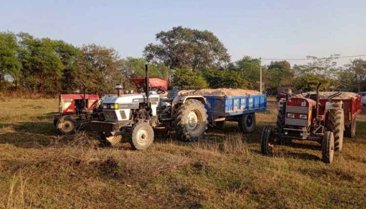 रेत तस्करी में लिप्त जप्त किये गए 4 ट्रैक्टर
