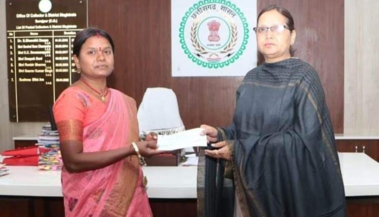 कलेक्टर सुश्री आरा ने पत्नी श्रीमती गायत्री राजवाड़े को पति के उपचार हेतु आर्थिक सहायता राशि का चेक प्रदाय किया।