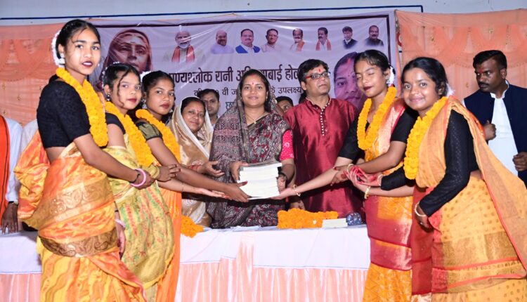 रानी अहिल्याबाई होलकर की 300वीं जयंती पर आयोजित कार्यक्रम में नारी सशक्तिकरण और सेवा भावना पर हुआ मंथन आयोजन में उपस्थित छात्राओं को कैबिनेट मंत्री लक्ष्मी राजवाड़े ने विभिन्न किताबो का वितरण किया