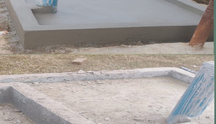 रामपुर में जल जीवन मिशन योजना का बुरा हाल, बनने के साथ ही टूटने लगा चबूतरा, घटिया निर्माण छिपाने पोत रहे सीमेंट का घोल…
