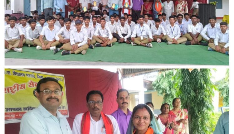 सूरजपुर/IRN.24… शासकीय उच्चतर माध्यमिक विद्यालय भटगांव की राष्ट्रीय सेवा योजना इकाई के द्वारा राष्ट्रीय सेवा योजना स्थापना दिवस पर संस्था के वरिष्ठ व्याख्याता पुष्पा तिर्की के मार्गदर्शन और राष्ट्रीय सेवा योजना कार्यक्रम अधिकारी संतोष कुमार गुप्ता के नेतृत्व में राष्ट्रीय सेवा योजना का स्थापना दिवस बड़ी धूमधाम से मनाया गया। इस कार्यक्रम का शुरुआत अतिथियो द्वारा मां सरस्वती, भारत माता व स्वामी विवेकानंद जी के चित्र पर पुष्पमाला अर्पित कर दीप प्रज्वलित कर कार्यक्रम के शुभारंभ किया गया। इस अवसर पर मुख्य अतिथि पूर्व नगर पंचायत अध्यक्ष परमेश्वरी राजवाड़े, बीजेपी नेता अशोक सिंह रहें। कार्यक्रम अधिकारी संतोष कुमार गुप्ता ने एनएसएस के बारे में विस्तार पूर्वक बताते स्थापना दिवस पर प्रकाश डाला। इस अवसर पर पुराने स्वयंसेवकों को ए प्रमाण पत्र का वितरण व नए स्वयंसेवकों को डायरी बैच का वितरण एवं देसी खेल कितने भाई कितने रुमाल झपटा, राम रावण खेल खेलाया गया। कार्यक्रम को वरिष्ठ पत्रकार अफरोज खान सम्बोधित करते हुवे कहा की माँ बाप के बाद बच्चों का सबसे बड़ा शुभ चिंतक शिक्षक होते है जिनके मार्गदर्शन से आप सभी अपने जीवन के लक्ष्य को आसानी से प्राप्त कर सकते हैं। अशोक सिंह ने कहा की राष्ट्रीय सेवा योजना के माध्यम से बच्चों में अच्छे संस्कार और तथा अच्छे नागरिक बनने के गुण पैदा किए जाते हैं, आप सभी अच्छे से पढ़ाई करके विद्यालय का नाम रोशन करें। इस अवसर पर परमेश्वरी राजवाड़े ने संबोधित करते हुए कहा कि राष्ट्रीय स्वयं योजना के द्वारा आपको अनुशासन में रहने का समाज में सच्ची सेवा करने का जो प्रशिक्षण मिलेगा वह आपके जीवन में हमेशा काम आएगा। स्थापना दिवस के अवसर पर वरिष्ठ पत्रकार अफरोज खान,देवेंद्र सिंह,मोहन प्रताप सिंह,पप्पू मिश्रा,शशि रंजन सिंह को स्मृति चिन्ह व भेट देकर सम्मानित किया गया। कार्यक्रम के अंत में सभी अतिथियों,पत्रकारों के संघ के सदस्यो ने छात्रों के साथ मिलकर के सफाई अभियान चलाकर स्वच्छता का जागरूकता का कार्य किया गया। कार्यक्रम का मंच संचालन कार्यक्रम अधिकारी संतोष कुमार गुप्ता ने किया। और आभार व्यक्त पी तिर्की के द्वारा किया गया। इस कार्यक्रम मे स्कूल के समस्त शिक्षक शिक्षिकाएं एवं समस्त छात्र उपस्थित रहे।