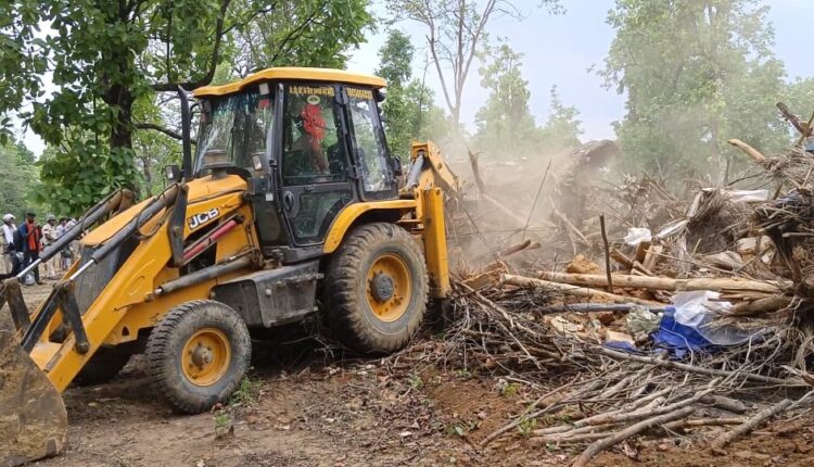 वन विकास निगम ने आज जिला प्रशासन एवं पुलिस प्रशासन सूरजपुर की सहायता से एक बड़ी एक बड़ी कार्रवाई करते हुए अतिक्रमण कर बनाए गए लगभग 40 घरों पर एक साथ पांच बुलडोजर चला कर ध्वस्त करते हुए काबिज सभी वन भूमि को खाली करा दिया है,,,, इस कार्रवाई में भारी संख्या में सूरजपुर जिले की पुलिस तैनात रही,, इस कार्रवाई के दौरान कई बार संयुक्त टीम को कब्जाधारीयों के विरोध का सामना करना पड़ा लेकिन अंतत,, सूरजपुर एडिशनल एसपी संतोष महतो के नेतृत्व में पुलिस की सूझबूझ से भारी विरोध के बीच काबिज सभी वन भूमि को कब्जा मुक्त करा दिया गया है।,,,,,, स्थानीय लोगों के मुताबिक अतिक्रमण के दौरान घर बनाते समय लाखों पेड़ की बलि चढ़ा दी गई ,,, लेकिन उस समय वन विकास निगम के तरफ से सुरक्षा में तैनात कर्मियों की लापरवाही से एक बड़े जन समूह ने जंगल के भीतर कब्जा जमा लिया था,, लेकिन वन विकास निगम के वर्तमान डीएम आर आर पैकरा ने महेशपुर की इस काबिज भूमि को कब्जा धारियों के चंगुल से खाली कराने की सोची, और सूरजपुर जिला प्रशासन ,पुलिस प्रशासन व राजस्व टीम के सहयोग से आज उक्त काबिज भूमि में बुलडोजर चलाकर कब्जा मुक्त करा दिया है,,,,,, इस कार्रवाई को सूरजपुर जिले की सबसे बड़ी कार्रवाई के रूप में देखी जा रही है।
