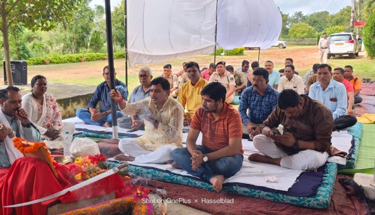 सूरजपुर। विजयादशमी पर्व पर पुलिस लाईन, थाना-चौकी में शस्त्र पूजन की गई। पुलिस अधीक्षक सूरजपुर श्री रामकृष्ण साहू ने बुधवार, 05 अक्टूबर को विजय दशमी पर्व पर अपनी परम्परा के अनुसार पुलिस लाईन पर्री में विधि विधान से शस्त्र पूजन करते हुये मॉ दुर्गा की आरती की। पूजा के उपरान्त पुलिस अधीक्षक ने सभी अधिकारी-कर्मचारियों को दशहरा पर्व की शुभकामनाएं दी। इसके बाद उन्होंने पुलिस लाईन के आवासगृह का जायजा भी लिया। आज विजयादशमी के दिन सूरजपुर जिले के सभी थाना-चौकी प्रभारियों के द्वारा भी हथियारों पर पुष्प और कंकु लगाकर मंत्रोच्चार के साथ विधि विधान से पूजा सम्पन्न करवाई।