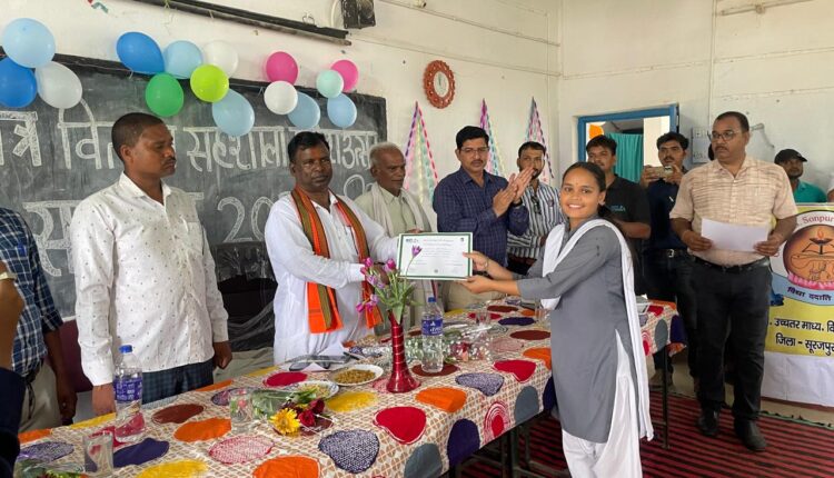 सूरजपुर/IRN.24…शासकीय उच्चतर माध्यमिक विद्यालय सोनपुर में नीट फाऊंडेशन एवं इंडस टावर के संयुक्त तत्वाधान में डिजिटल ट्रांसफॉरमेशन वेन के द्वारा कंप्यूटर प्रशिक्षण प्राप्त विद्यार्थियों को प्रमाण पत्र वितरण का कार्यक्रम आयोजित किया गया। जिसमें मुख्य अतिथि भूलन सिंह मरावी विधायक प्रेमनगर, विजय सिंह सरपंच ग्राम पंचायत सोनपुर, मानिक राम सरपंच ग्राम पंचायत आमगांव, उमाशंकर साहू, राजकुमार साहू उपसरपंच सोनपुर, विकासखंड शिक्षा अधिकारी रामानुजनगर पंडित भारद्वाज, अजीत कुमार गुप्ता प्राचार्य शासकीय उच्चतर माध्यमिक विद्यालय सोनपुर, रमेश कुमार गुप्ता प्राचार्य शासकीय हाई स्कूल पटना, जितेंद्र राठौर प्रशिक्षण के प्रभारी की उपस्थिति में कार्यक्रम संपन्न हुआ। कार्यक्रम की शुरुआत स्वागत गीत से हुआ तत्पश्चात प्राचार्य का स्वागत उद्बोधन एवं सभी अतिथियों का उद्बोधन हुआ, जिसमें मुख्य अतिथि के द्वारा बच्चों से सीधा संवाद कर उनके भविष्य के लक्ष्य के बारे में जानकारी ली गई तथा उन्हें नए उत्साह के साथ पढ़ने हेतु प्रेरित किया गया।