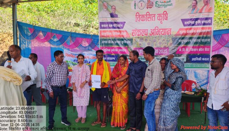 सूरजपुर/IRN.24…/ जिले के समस्त विकाखण्डों में “विकसित कृषि संकल्प अभियान” का आयोजन किया जा रहा है। शिविर में किसानों को खरीफ मौसम को ध्यान में रखते हुए के.सी.सी. के माध्यम से आदिम जाति सेवा सहकारी समितियों से उन्नत खाद-बीज की अग्रिम उठाव की सलाह दी, खरीफ फसल अन्तर्गत अनाज, दलहन-तिलहन, साग सब्जी की उन्नत बीजों का चयन करने हेतु कहा गया। वैज्ञानिकों द्वारा धान के किस्म डज्न् 1010 के जगह पर विक्रम टी.सी.आर. एवं अन्य किस्म जो 10 वर्ष के अन्दर के हैं उपयोग करने हेतु जोर देते हुए धान बीज को 17ः नमक घोल बीज उपचार विधि अपनाने हेतु जागरूक करते हुए किसानों के पास उपलब्ध वेस्ट डीकम्पोजर के उपयोग करने एवं डीएपी खाद की कमी को देखते हुए 12ः32ः16, 20ः20ः0ः13 और एस.एस.पी., नैनो यूरिया, नैनो डी.ए.पी. जैसे वैकल्पिक उर्वरकों का सहकारी समितियों से उठाव कर उपयोग करने कहा गया। किसानों को मृदा स्वास्थ्य कार्ड में दिये गये मापदण्ड अनुसार संतुलित उर्वरक का उपयोग करने व फसलों में लगने वाले बिमारियों के बारे में बारिकी से समझाया और फसल बीमा कराने पर जोर दिया। किसानों को फसल की सिंचाई हेतु ड्रिप एवं स्प्रिंकलर सिंचाई के माध्यम कम पानी में अधिक पैदावार प्राप्त करने हेतु सलाह देते हुए ड्रिप, स्प्रिंकलर एवं अन्य कृषि यंत्रों में विभाग से प्रदाय अनुदान राशि से अवगत कराया गया। शिविर में धान के बदले लघु धान्य फसलों-कोदो, कुटकी, रागी इत्यादि एवं दलहन-तिलहन फसलों को बढ़ावा देने हेतु सुझाव दिया गया। किसानों ने कृषि वैज्ञानिकों से सीधा संवाद कर अपनी जिज्ञासाएं एवं समस्याएं दूर की। उद्यानिकी विभाग के अधिकारी द्वारा उद्यानिकी खेती करने की सलाह देते हुए साग-सब्जी, फल, फूल एवं मसाले की खेती करने लिए शासन द्वारा दी जा रही अनुदान राशि की जानकारी दी। पशुपालन विभाग द्वारा पशुओं को लगाये जाने वाले टीकाकरण के महत्व को बतात हुए जोर दिया गया की समय-समय पर टीकाकरण कराना अनिवार्य हैं साथ ही विभागीय योजनाओं की जानकारी दी। मत्स्यपालन विभाग से विभागीय योजनाओं की जानकारी देते हुए मछलीपालन की बारिकीयों से अवगत कराया।
