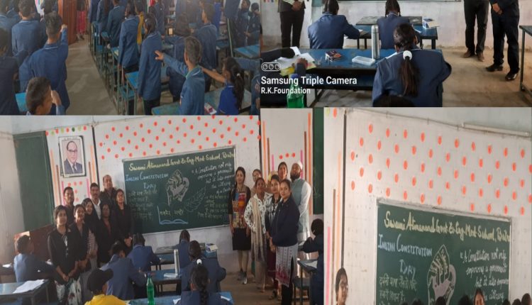 भैयाथान विकासखंड अंतर्गत ग्राम बतरा स्थित स्वामी आत्मानंद शासकीय उत्कृष्ट अंग्रेजी माध्यम विद्यालय में संविधान दिवस के अवसर पर भाषण,क्विज, निबंध लेखन सहित विभिन्न कार्यक्रम का आयोजन किया गया. इस अवसर पर विद्यालय के प्राचार्य श्री गोवर्धन सिंह ने अपने वक्तव्य में कहा कि संविधान दिवस हर साल 26 नवंबर के दिन मनाया जाता है. 1949 में आज ही के दिन भारत की संविधान सभा ने औपचारिक रूप से भारत के संविधान को अपनाया जो 26 जनवरी 1950 को लागू हुआ. सरकार ने 19 नवंबर, 2015 को राजपत्र अधिसूचना की सहायता से 26 नवंबर को संविधान दिवस के रूप में घोषित किया था. संविधान में लिखा है कि भारत का कोई आधिकारिक धर्म नहीं होगा. यह ना तो किसी धर्म को बढ़ावा देता है और ना ही किसी से भेदभाव करता है. हाथों से लिखे गए संविधान पर 24 जनवरी 1950 को हस्ताक्षर किए गए थे. इस पर 284 सांसदों ने हस्ताक्षर किए थे, जिनमें 15 महिला सांसद थीं. इसके बाद 26 जनवरी से ये संविधान पूरे देश में लागू हो गया. हमारे देश के संविधान के निर्माण में डॉ. भीमराव अम्बेडकर का सबसे प्रमुख रोल था, इसलिए संविधान दिवस उन्हें श्रद्धाजंलि देने के प्रतीक के रूप में भी मनाया जाता है. कार्यक्रम प्रभारी सुश्री रुचि कुशवाहा ने संविधान दिवस की महत्ता बताते हुए कहा कि यह संविधान ही है जो हमें एक आजाद देश का आजाद नागरिक की भावना का एहसास कराता है जहां संविधान में दिए मौलिक अधिकार हमारे ढाल बनकर हमें हमारा हक दिलाते हैं वहीं इसमें दिए गए मौलिक कर्तव्य हमें हमारी जिम्मेदारियां भी याद दिलाते हैं यह भी जानना जरूरी है कि 26 नवंबर का दिन देश में राष्ट्रीय कानून दिवस के रूप में भी मनाया जाता है। इस अवसर पर संविधान की उद्देश्यिका का शपथ शिक्षिका सुश्री सोनम नायर ने छात्रों का दिलाया तथा कार्यक्रम का मंच संचालन श्रीमती फातमा सोगरा ने किया. उपरोक्त कार्यक्रम को सफल बनाने में विद्यालय के प्राचार्य श्री गोवर्धन सिंह सहित शिक्षकगण आकिब आलम, स्मृति मिश्रा, रागिनी जायसवाल, एकता सिंह, ज्योति, आमरीन, स्वेता कुंडू, अमजद अली, हिमांशु शर्मा, सुरेखा कुमारी, प्रियंका कुमारी का सराहनीय सहयोग रहा.
