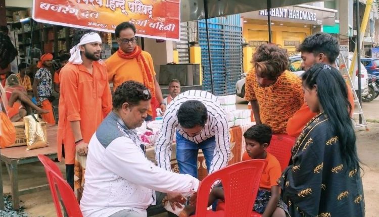 कांवरियों की थकान एवं दर्द में अपनी महत्वपूर्ण सेवा दे रहा विश्व हिंदू परिषद