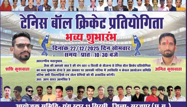 सिरसी में टेनिस बॉल क्रिकेट प्रतियोगिता का भव्य आयोजन 22 दिसंबर को