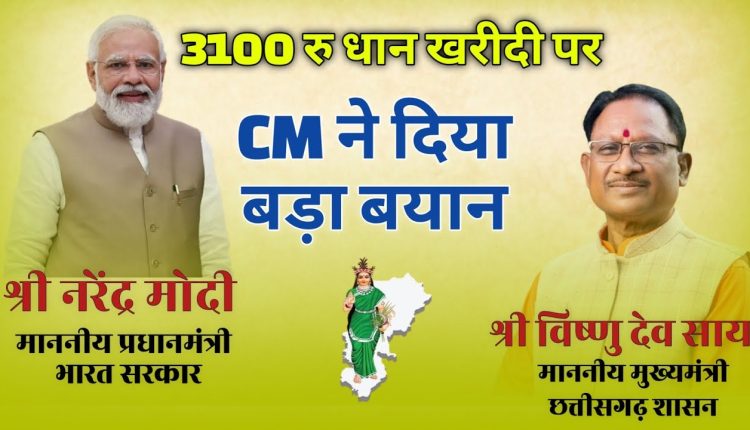 सीएम विष्णुदेव साय ने कर दी बड़ी घोषणा इस सीजन से 3100 रुपए के समर्थन मूल्य में धान की खरीदी.