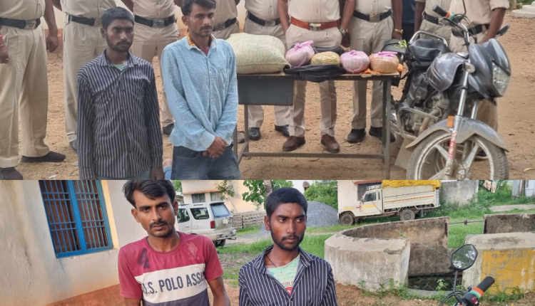 गुरूवार को चौकी प्रभारी रेवटी सुनील सिंह को मुखबीर से सूचना मिला कि एक मोटर सायकल में 2 गांजा तस्कर अम्बिकापुर से बनारस की ओर गांजा लेकर जा रहे है। एसडीओपी प्रतापपुर अमोलक सिंह के मार्गदर्शन में सूचना पर त्वरित कार्यवाही करते हुए चौकी रेवटी पुलिस ने बनारस मुख्य मार्ग के ग्राम भेड़िया में घेराबंदी कर मोटर सायकल सहित नीरज सिंह पिता जीत बहादूर सिंह उम्र 32 वर्ष निवासी नीबाबल, थाना लालगंज, जिला मिर्जापुर उत्तरप्रदेश एवं बबलेश कोल पिता रामधनी कोल उम्र 27 वर्ष ग्राम खरीहट कला, थाना लालगंज, जिला मिर्जापुर उत्तरप्रदेश को पकड़ा।
