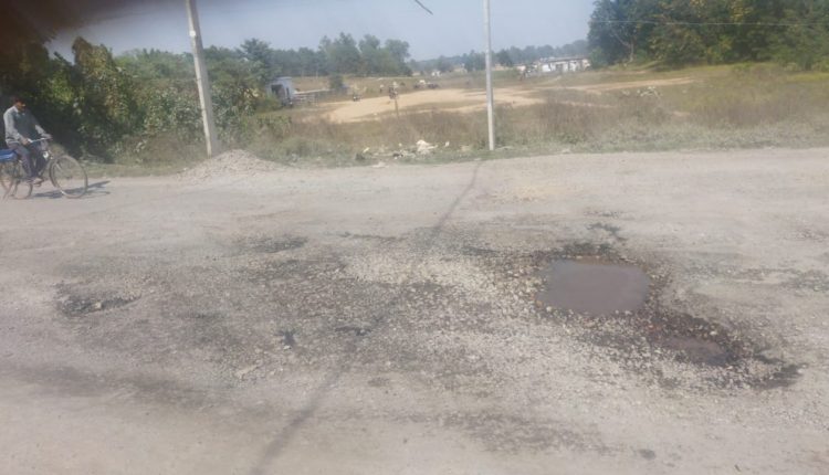 सूरजपुर जिले के नगर पंचायत जरही में बनारस हाईवे रोड बीचोबीच गड्ढे और जर्जर में तब्दील हादसों को दे रहा निमंत्रण