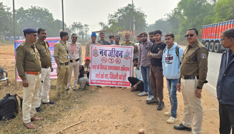 सूरजपुर पुलिस का ‘‘नवजीवन‘‘ अभियान। नशे के विरूद्ध आमजनों व वाहन चालकों को किया गया जागरूकता, यातायात नियमों का पालन करने दी गई समझाईश।