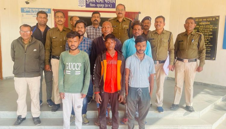 वारंटियों की धरपकड़ के अभियान में थाना भटगांव पुलिस ने एक ही दिन में वन प्राणी अधिनियम व चोरी के मामले में 3 स्थाई वारंटी राम बहादूर, वीरभद्र व राकी को पकड़ वारंट तामील किया है। इसी प्रकार अलग-अलग मामलों में 4 गिरफ्तारी वारंट तामील किया है। इसी क्रम में थाना जयनगर पुलिस ने 1 स्थाई व 7 गिरफ्तारी वारंट तामील किया है। इन सभी वारंटियों को माननीय न्यायालय में पेश किया गया। वारंटियों की तामिली हेतु पुलिस की टीमें लगातार दबिश में लगी है। इस कार्यवाही में थाना प्रभारी भटगांव शरद चन्द्रा, थाना प्रभारी जयनगर सुभाष कुजूर, एसआई बीएम गुप्ता, सी.पी.तिवारी, एएसआई विरेन्द्र यादव, प्रधान आरक्षक पवन सिंह, आरक्षक मनोज जायसवाल, रजनीश पटेल, संतोष जायसवाल, गिरिजा शंकर, ताराचंद यादव, जगत पैंकरा, भुनेश्वर पाटले, प्रहलाद पैंकरा, नौशाद व महिला आरक्षक आशा लकड़ा सक्रिय रहे।