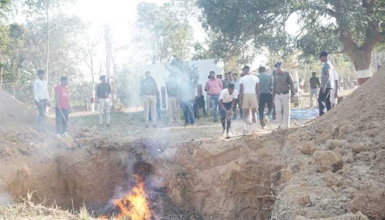 सूरजपुर/irn.24… बुधवार, 18 फरवरी 2026 को सूरजपुर पुलिस ने मादक पदार्थों के खिलाफ बड़ी कार्रवाई करते हुए 65 लाख कीमत के नशीले पदार्थो को नष्ट किया है। पुलिस लाईन परिसर में अस्थायी भट्ठे में मादक पदार्थों को नष्ट किया गया। जिला स्तरीय औषधि निपटान समिति की देखरेख में यह कार्रवाई की गई। इस दौरान एनडीपीएस एक्ट के 20 प्रकरणों में जब्त 101.74 किलोग्राम गांजा, 753 नग गांजा का पौधा, टेबलेट 103 नग, इंजेक्शन 778 नग, कफ सिरप 98 नग एवं कैप्सूल 5920 नग को नष्ट किया गया जिसकी अनुमानित कीमत करीब 65 लाख रूपये है। डीआईजी एवं एसएसपी सूरजपुर श्री प्रशांत कुमार ठाकुर ने बताया कि यह कार्रवाई केंद्र सरकार के वित्त मंत्रालय की 23 दिसंबर 2022 की अधिसूचना और छत्तीसगढ़ शासन के 21 नवंबर 2024 के निर्देशों के अनुसार की गई।