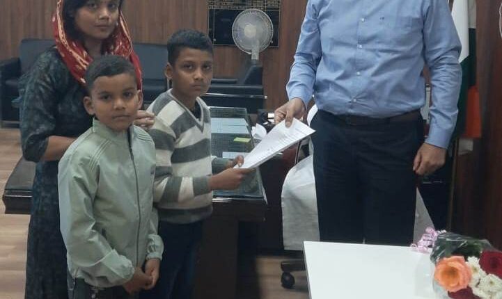 सूरजपुर/IRN.24… जिले की पुलिस विभाग में बारह वर्ष के बच्चे को नियुक्ति दी गई है। बाल आरक्षक के रुप में भर्ती किए गए बच्चे के पिता की असामयिक निधन के बाद उसे अनुकंपा नियुक्ति दी गई है। अपनी मां व छोटे भाई के साथ पुलिस अधीक्षक कार्यालय पहुंचे बच्चे को वरिष्ठ पुलिस अधीक्षक सूरजपुर प्रशांत कुमार ठाकुर ने नियुक्ति का आदेश प्रदाय किया। एसएसपी ने नियुक्ति आदेश के साथ बच्चों की पसंदीदा चॉकलेट भी प्रदाय किया और बाल आरक्षक को बेहतर शिक्षा दिलाने की दिशा मे उसकी मॉ को मार्गदर्शन दिया।