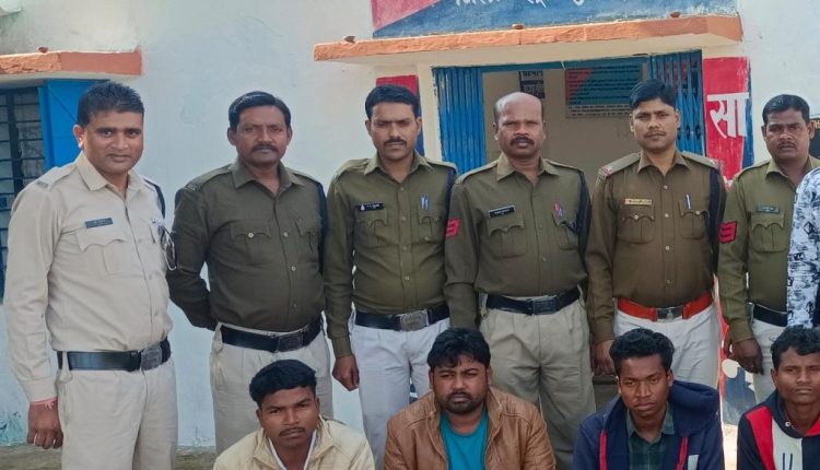 एसडीओपी प्रेमनगर प्रकाश सोनी के मार्गदर्शन में चौकी उमेश्वरपुर पुलिस के द्वारा अज्ञात चोर की पतासाजी करने के दौरान मुखबीर से सूचना मिला कि घटना के पूर्व रात्रि में गांव के कुछ व्यक्ति स्कूल के पास घूमते देखे गए है। संदेह के आधार पर ग्राम सलका निवासी जय सिंह व करन साहू को पकड़ा गया। पूछताछ पर दोनों ने बताया कि अपने साथी गोरे लाल सिंह, ठाकुर सिंह व एक विधि विरूद्ध संघर्षरत् बालक के साथ मिलकर स्कूल का ताला तोड़कर मध्यान भोजन के लिए रखे 4 बोरी चावल को चोरी किया गया है। आरोपियों के निशानदेही पर चोरी किए गए 4 बोरी चावल कीमत 3200 रूपये को बरामद किया गया। मामले में आरोपी जयसिंह, करन साहू, गोरेलाल सिंह, ठाकुर सिंह को गिरफ्तार किया गया। वहीं एक विधि विरूद्ध संघर्षरत बालक को विधि अनुसार किशोर न्याय बोर्ड के प्रस्तुत किया गया। इस कार्यवाही में चौकी प्रभारी उमेश्वरपुर देवनाथ चौधरी, प्रधान आरक्षक जगदीश सिंह, आरक्षक राकेश सिंह, विक्रम सिंह, शिवशंकर, मनोज जायसवाल, मंगलमूर्ति नेताम व सुरेन्द्र सिंह सक्रिय रहे।