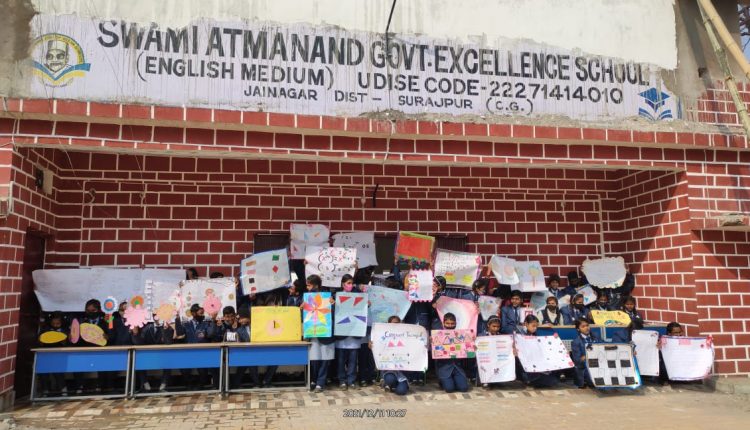 दिनांक 11/12/2021 को स्वामी आत्मानन्द शासकीय अंग्रेजी माध्यम विद्यालय जयनगर (सूरजपुर) में गणित प्रदर्शनी व गणित प्रसोत्तरी का आयोजन किया गया। इसमें कक्षा 1ली से लेकर 11वीं के बच्चों ने हिस्सा लिया। बच्चों ने गणित के मॉडल प्रस्तुत किए, जीसकी काफी सराहना हुई। गणित के शिक्षकों ने बच्चों का मार्गदर्शन किया। प्राचार्या श्रीमति कलिस्ता अक्खड़ ने बच्चों को प्रोत्साहित किया एवं उनके प्रदर्शनी की सराहना की।