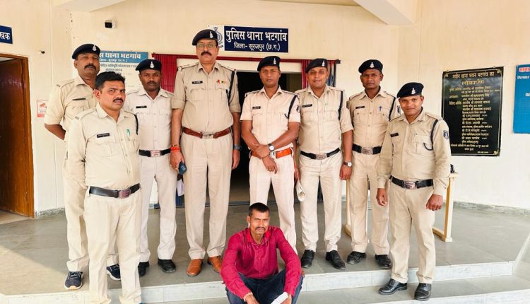 पुलिस महानिरीक्षक सरगुजा रेंज श्री रामगोपाल गर्ग (भा.पु.से.) के सतत् मार्गदर्शन में पुलिस अधीक्षक सूरजपुर श्री रामकृष्ण साहू (भा.पु.से.) ने मामले के आरोपी को जल्द गिरफ्तार करने के निर्देश थाना प्रभारी को दिए। अतिरिक्त पुलिस अधीक्षक मधुलिका सिंह व एसडीओपी प्रतापपुर अमोलक सिंह के मार्गदर्शन में थाना भटगांव पुलिस ने मामले की विवेचना करते हुए मुखबीर की सूचना पर दबिश देकर आरोपी बसंत राजवाडे पिता राम कृष्ण राजवाडे उम्र 30 वर्ष निवासी मदनपुरपारा श्यामनगर थाना भटगांव को घेराबन्दी कर पकड़ा। पूछताछ पर आरोपी ने घटना को अंजाम देना स्वीकार किया जिसके निशानदेही पर घटना में प्रयुक्त आलाजरब जप्त कर आरोपी को गिरफ्तार किया गया। इस कार्यवाही में थाना प्रभारी भटगांव राजेन्द्र साहू, एसआई सी.पी.तिवारी, एएसआई सुमन्त पाण्डेय, गुरू प्रसाद यादव, प्रधान आरक्षक सुन्दरलाल, शत्रुधन पोर्ते, आरक्षक मनोज जायसवाल, मोहम्मद नौशाद, संतोष जायसवाल, प्रकाश साहू, भोलाशंकर राजवाडे, प्रहलाद पैकरा, शैलेश राजवाडे व रामचन्द राम सक्रिय रहे।