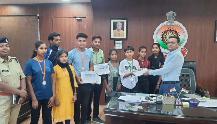 पुलिस अधीक्षक श्री एलिसेला ने विजेता खिलाड़ियों की सराहना करते हुए कहा कि हम सभी का लक्ष्य खिलाड़ियों की छिपी हुई प्रतिभा को निखारना है, इसके लिए इन होनहार खिलाड़ी युवा पीढ़ी को लगातार प्रेरित किया जा रहा है। इन खिलाड़ियों ने सफलता अर्जित कर सूरजपुर जिले का नाम रौशन किया है। उन्होंने खिलाड़ियों को कहा कि यह उपलब्धि आपकी अटूट ध्येयनिष्ठा, अथक परिश्रम और अद्धुत कौशल का प्रतिफल है। आपका भविष्य स्वर्णिम हो, सफलता का यह क्रम चलता रहे, यही कामना है। इस दौरान अतिरिक्त पुलिस अधीक्षक मधुलिका सिंह, विजेता खिलाड़ी, कोच रूप नारायण यादव, पल्लवी देवांगन, सुनीता राजवाड़े, सरोज पैंकरा, मीरा राजवाड़े मौजूद रहे।