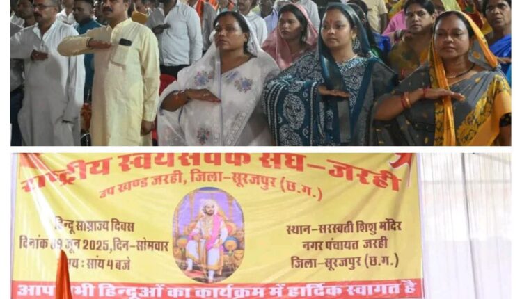 भटगांव/IRN.24…/ नगर पंचायत जरही में स्थित सरस्वती शिशु मंदिर स्कूल परिसर में सोमवार को हिंदू संगठनों द्वारा हिंदू साम्राज्य दिवस कार्यक्रम का आयोजन किया गया। इस आयोजन के मुख्य अतिथि प्रदेश भाजपा संगठन महामंत्री पवन साय रहे, वहीं मुख्य वक्ता के रूप में स्वामी परमात्मानंद गिरी जी महाराज (पेंड्रा वाले) ने उद्बोधन दिया।