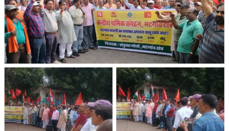 महाप्रबंधक कार्यालय के समक्ष प्रदर्शन कियाऔर ज्ञापन सौंपा। ज्ञात हो की केंद्र सरकार द्वारा सी.टी.ओ नहीं मिलने की वजह से एसईसीएल भटगांव क्षेत्र अंतर्गत संचालित 1-2 भूमिगत कोयला खदान 31 अक्टूबर को बंद होने जा रहा है। जिससे श्रमिकों ने भारी आक्रोश है। इसी बात को लेकर के आज पांचों ट्रेड यूनियन के श्रमिक नेताओं ने संयुक्त मोर्चा बना करके कोयला मजदूरों के साथ भटगांव खदान प्रबंधक कार्यालय तथा महाप्रबंधक कार्यालय जरही का घेराव करके प्रदर्शन किया तथा सी एम डी बिलासपुर के नाम ज्ञापन सौंपा।