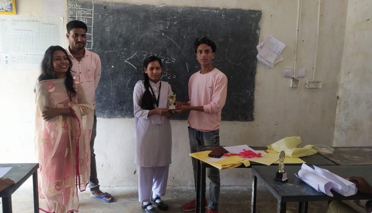 शा.उच्च मा. विद्यालय सोनगरा में अखिल भारतीय विद्यार्थी परिषद के बुंदिया इकाई के नगर मंत्री पंकज गुप्ता और कार्यकारणी प्रमुख ओमप्रकाश गुप्ता के द्वारा सामान्य ज्ञान प्रतियोगिता करवाया गया! इसमें हमारे सहयोगी और विद्यालय प्रमुख रॉबिन राजकुमारी भी साथ थी, साथ ही सोनगरा स्कूल के प्राचार्य और अध्यापिका का विशेष योगदान रहा ! इस प्रतियोगिता में विद्यार्थियों ने बड़ चढ़ के हिस्सा लिया था और अपने अपने प्रतिभा का परिचय कराया ! इस प्रतियोगिता सोनगरा स्कूल के बच्चों ने कुल 120 नाम दिया था ! इस प्रतियोगिता में कक्षा 11 वीं( विज्ञान) के छात्रा प्रियंका सोनी ने 34/50 अंक प्राप्त करके विद्यालय में प्रथम स्थान प्राप्त किया वही 11 वी के नितिन मिश्रा ने 30/50 नंबर ला के विद्यालय में दूसरा स्थान प्राप्त किया किया ! विद्यार्थी परिषद् के पंकज गुप्ता के हाथों से बच्चों को शील्ड मेडल के साथ पुरुस्कृत किया साथ ही विद्यालय के ! इन दोनों छात्रों को विद्यार्थी परिषद् और हमारी ओर से बहुत बहुत बधाई एवम् शुभकामनाएं ऐसे ही अपने प्रतिभा दिखाते रहें!*