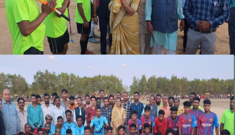 भटगांव– ग्रामीण स्तरीय फुटबॉल प्रतियोगिता बुंदिया खेल परिसर में फाइनल मुकाबला खेला गया। इसमें मुख्य रूप से महिला बाल विकास एवं समाज कल्याण मंत्री लक्ष्मी राजवाडे ने शिरकत की। यह प्रतियोगिता में 32 टीम शामिल रही। विजेता टीम बरपारा को 21 हजार नगद व शील्ड से नवाजा गया। जबकि उपविजेता टीम कोथारी (चंदपुर) को 15 हजार रूपए का नगद व शील्ड पुरूस्कार दिया गया। इस फाइनल मैच में बरपारा की टीम 1-0 से विजयी रही। मुकाबला में दोनों टीम ने कड़ी मेनहत की।इस दौरान मुख्य अतिथि महिला बाल विकास एवं समाज कल्याण मंत्री लक्ष्मी राजवाडे ने कहा कि यहां हर युवा के रग-रग में खेल प्रतिभा छिपी है। पूरे विश्व में खेल के क्षेत्र में आज भारत का डंका बज रहा है। खेल हमारे जीवन का अभिन्न अंग है। खेल से शारीरिक विकास के साथ मानसिक विकास भी होता है। खेल हमेशा अनुशासन के साथ खेलना चाहिए, तभी हम आदर्श खिलाड़ी के रूप में उभर कर आगे आ सकते हैं। इस दौरान विशिष्ट अतिथि जिला पंचायत सदस्य लवकेश पैकरा ने कहा कि प्रत्येक खिलाड़ी की अपनी महत्वपूर्ण भूमिका होती है, उसी भूमिका के आधार पर वह अपने आप को साबित कर अपनी टीम को जीत की ओर अग्रसर करते हैं। इस कार्यक्रम में सुभाष राजवाड़े ने खिलाड़ियों को शुभकामनाएं देते हुए कहा कि आप लोग मेहनत के साथ खेलकर अपना मुकाम हासिल करें तथा अपने गांव क्षेत्र का नाम रोशन करें। कार्यक्रम का संचालन महामंत्री रमेश गुप्ता ने किया।इस दौरान जनपद अध्यक्ष शिवलोचनी पैकरा, अशोक सिंह, संतलाल प्रजापति, सत्यनारायण सिंह, आशीष वाजपेयी, अनूप जायसवाल, पूरन राजवाडे, मोनू सिंह, प्रिंस जायसवाल, दयाल राजवाड़े, भवन पैकरा सहित काफी संख्या में खेल प्रेमी व ग्रामीण उपस्थित है।